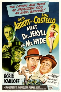 While not quite in the same league as “Abbott and Costello Meet Frankenstein” (possibly the duo’s best movie), “A&C meet Dr. Jekyll and Mr. Hyde” (what a long title) is still a fine vehicle for the boys, and shows that they were still in excellent form even after all these years at Universal. Thankfully, the movie offers an added treat by starring legendary horror icon Boris Karloff in the role of Dr. Jekyll (and not Mr. Hyde since it was stuntman Eddie Parker who did every scene as Jekyll’s alter ego). The story takes us to London, where Budd and Lou are inexplicably working for the London police. When they wind up in jail, it’s Dr. Jekyll who bails them out. Little do they know that this “polite” scientist is also Mr. Hyde, the monster who’s been terrorizing the city. Eventually, the boys spend the rest of the movie trying to solve the case in order for them to get back on the force. The comedy of Abbott and Costello this time around relies more on slapstick gags than their trademark routines. No worries, it works perfectly fine. Budd and Lou carry off their roles well, and the romantic subplot here doesn’t seem to intrude as much as in their earlier wartime comedies (“One Night In The Tropics” and “Ride’ Em Cowboy” come to mind). The story flows well and doesn’t waste our time with unecessary details. So basically, this is straighforward stuff, which makes the movie as a comedy a highly effective and successful one. It’s definitely one of their better films of the 50’s. Oh and you gotta love those vintage posters!