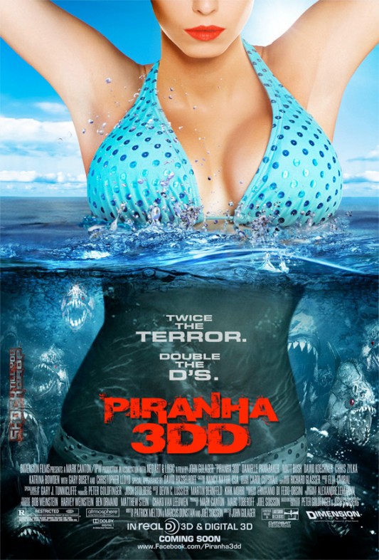 I watch bad movies so you can save your money. Case in point: “Piranha 3DD”, a truly awful sequel to the silly but entertaining “Piranha”. The first one had blood, full frontal nudity and Christopher Lloyd as a wacky scientist. Back then, I called it “the most enjoyable crap I’ve seen in a long time”. But what worked the first time around clearly didn’t in the sequel. Instead, it’s strictly a piece a junk, and The Weinstein Company clearly knows it (the movie was screened in less than 100 theaters in the States). The plot? There’s a water park run by a girl, Maddy, and her stepfather Chet. His brilliant idea (sarcasm of course) is to make it the nastiest, sexiest water park of all time. This will include naked women and David Hasselhoff as a lifeguard. Just think of it as a cross between Baywatch and some cheap porn movie. Meanwhile, the prehistoric piranha from the first film are back and working their way through the waterpipes into the park. Can you aim lower? “Piranha 3DD” is all noise, blood and lots of naked women. But we’ve seen it all before, and better. I can tell you straight away that the best thing about it is that it will all be over in no time. No wonder the cast gives up on acting. It’s not that writers Patrick Melton and Marcus Dunstan don’t put words in their mouths. The problem is, they do. “Double D’s get in for free!” says Chet at some point. I resented the idea of another sequel, but I had no idea it would turn out to be this bad. “Piranha 3DD” is worse than anything I’ve seen so far this year. It will make you puke for all the wrong reasons. And it sure as hell won’t be terror.