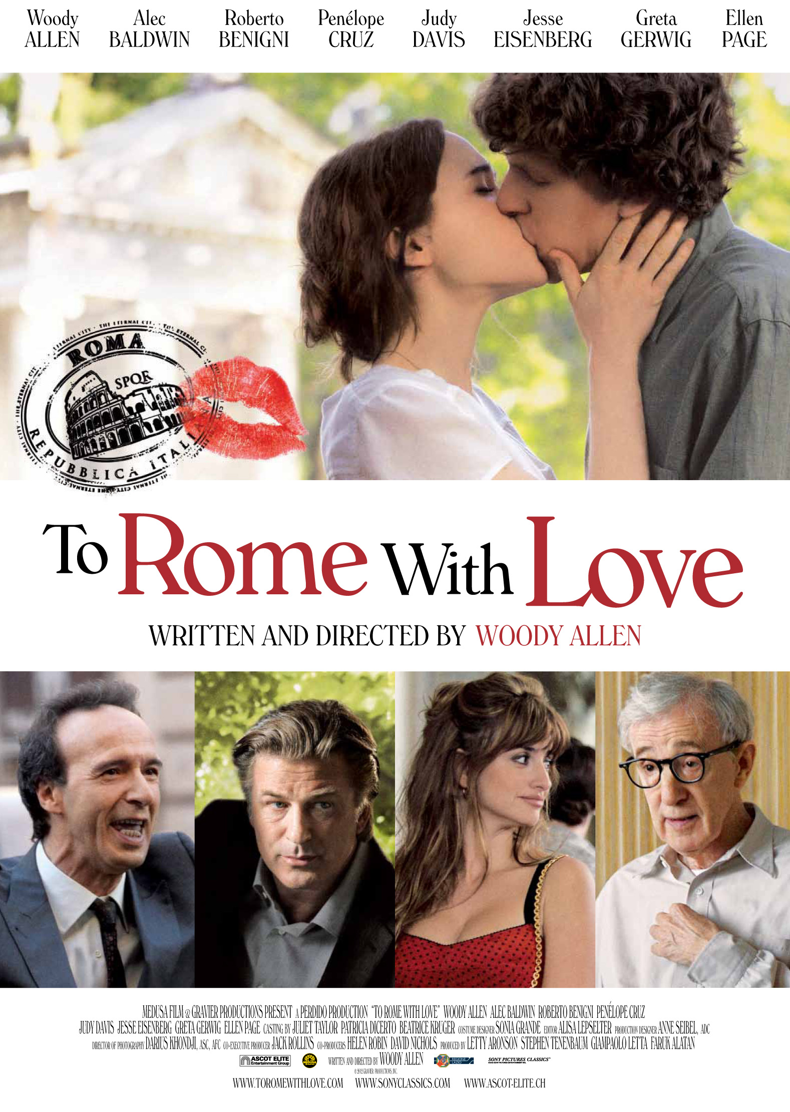 There’s nothing really wrong with a Woody Allen movie set in the Eternal city, but there’s nothing really right about it either. I had a few problems with his latest film “To Rome with Love”, but I had a good time watching it and sometimes, that’s what really matters. As usual, he has assembled an impressive cast and given them colorful roles to play. It’s a treat to watch Woody himself, Alec Baldwin, Jesse Eisenberg, Ellen Page, Roberto Benigni, Penelope Cruz, Judy Davis and a fine supporting cast in this uneven but amusing social roundelay set in Rome. The whole isn’t quite as good as the sum of its parts, but the movie is never boring. Another plus is the city itself, which makes you want to book a seat on the next plane. The movie opens with Alison Pil, an American tourist who falls in love with with a handsome Italian, forcing her parents (Allen and Davis) to visit. Then we meet Baldwin, who plays an architect trying to look up the street where he lived years ago and is recognized by Eisenberg, who invites him into his home. Greta Gerwig plays Eisenberg’s girlfriend who welcomes her neurotic friend (Page) to stay with them. Allen’s famous fatalism looms over the intertwined stories of ambition, self-delusion, unrequited love (or lust), and bad timing. It doesn’t always work this time around, especially the story involving Benigni who finds fame all of a sudden, but it’s a pleasure to see all these actors dig into the material. Of course I can’t place this film on the same level as “Match Point” or “Midnight in Paris”, but I also can’t dismiss it completely. All I can say is that it kept me entertained even though I knew that it had nowhere else to go. If you admire the actors as much as I do, and appreciate Woody Allen’s mindset, I think you will feel the same way.